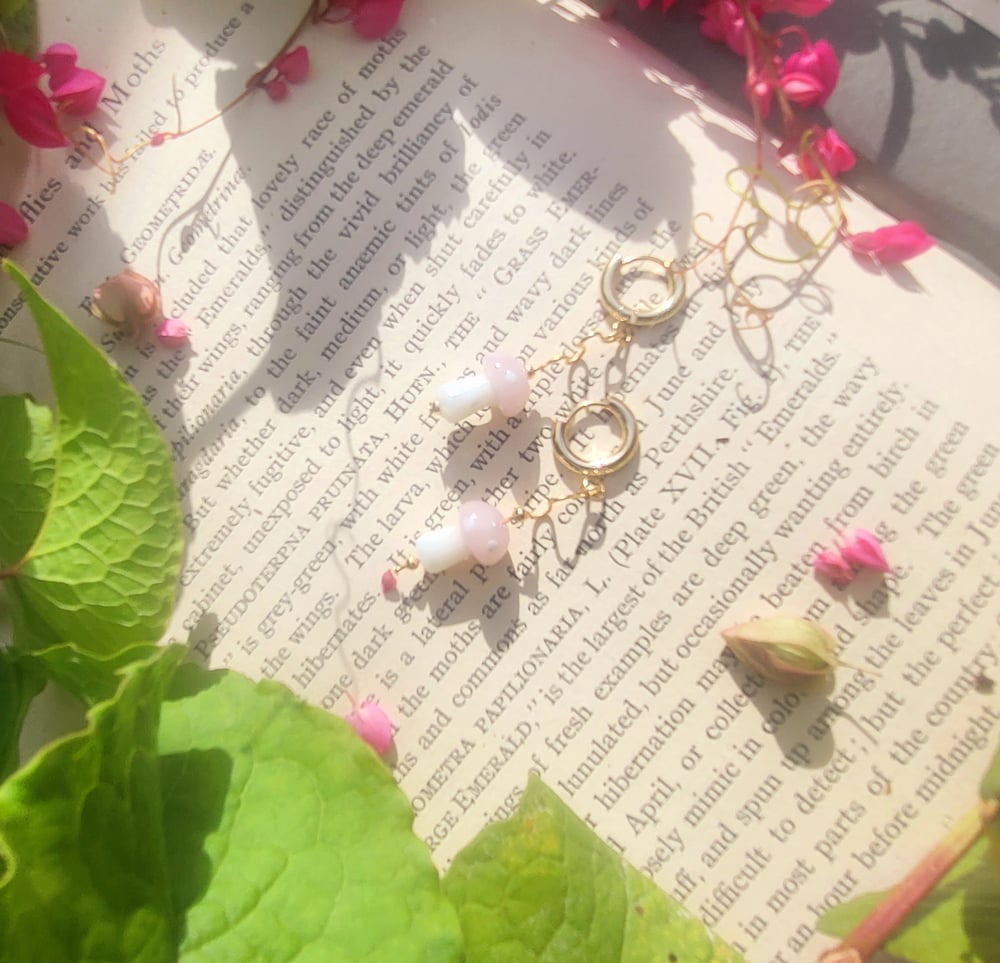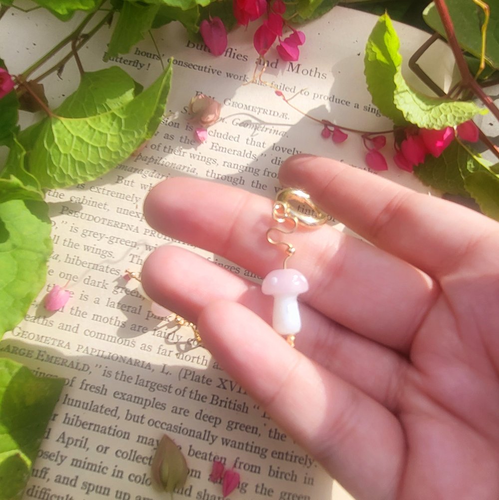 Handmade glass lampwork beads. Hand-assembled lovingly using high-quality findings. Inspired by my love of mycology, and doubles as a subtle and fashionable fidget!