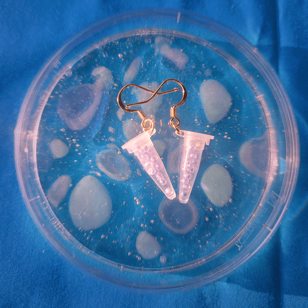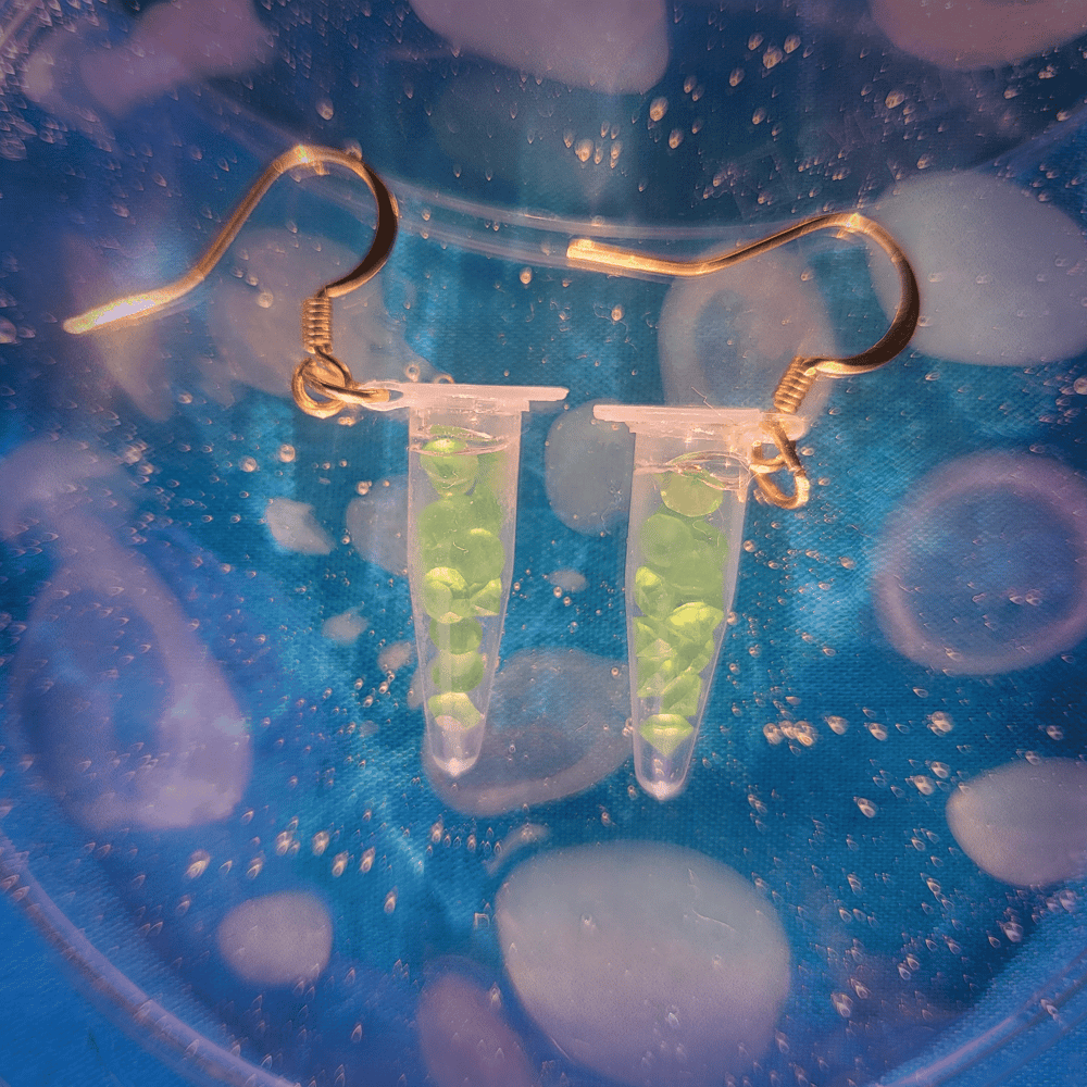 Delightful little PCR tube earrings filled with colourful upcycled beads, for all you wonderfully trendy and groovy scientists doing their best!