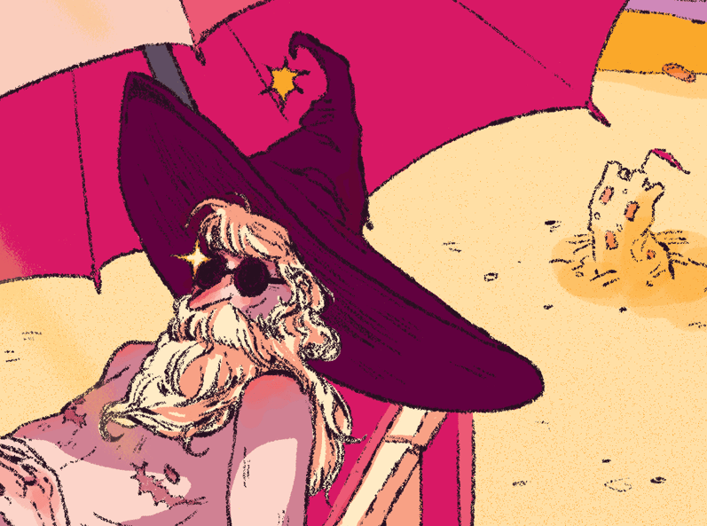 An A4, matte texture print of a wizard just living their life. Preview image only - final print will be high-quality and true to colour.